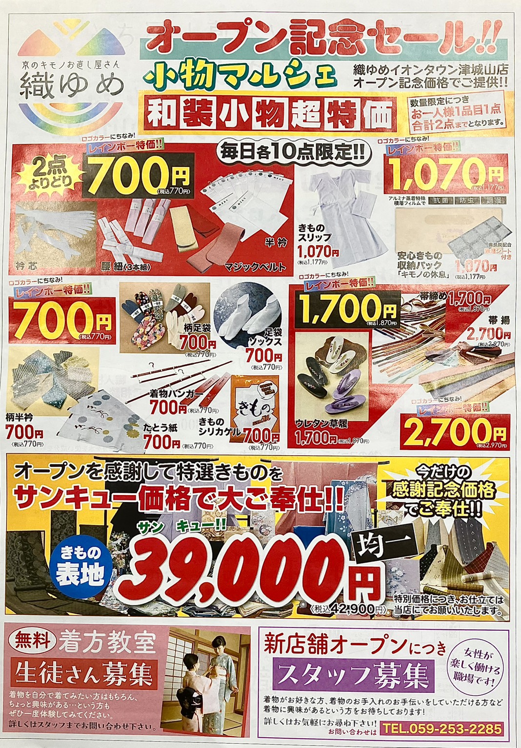 三重県津市、イオンタウン城山1階に『京のキモノお直し屋さん織ゆめ』リアル店舗をオープンさせて頂く運びとなりました。